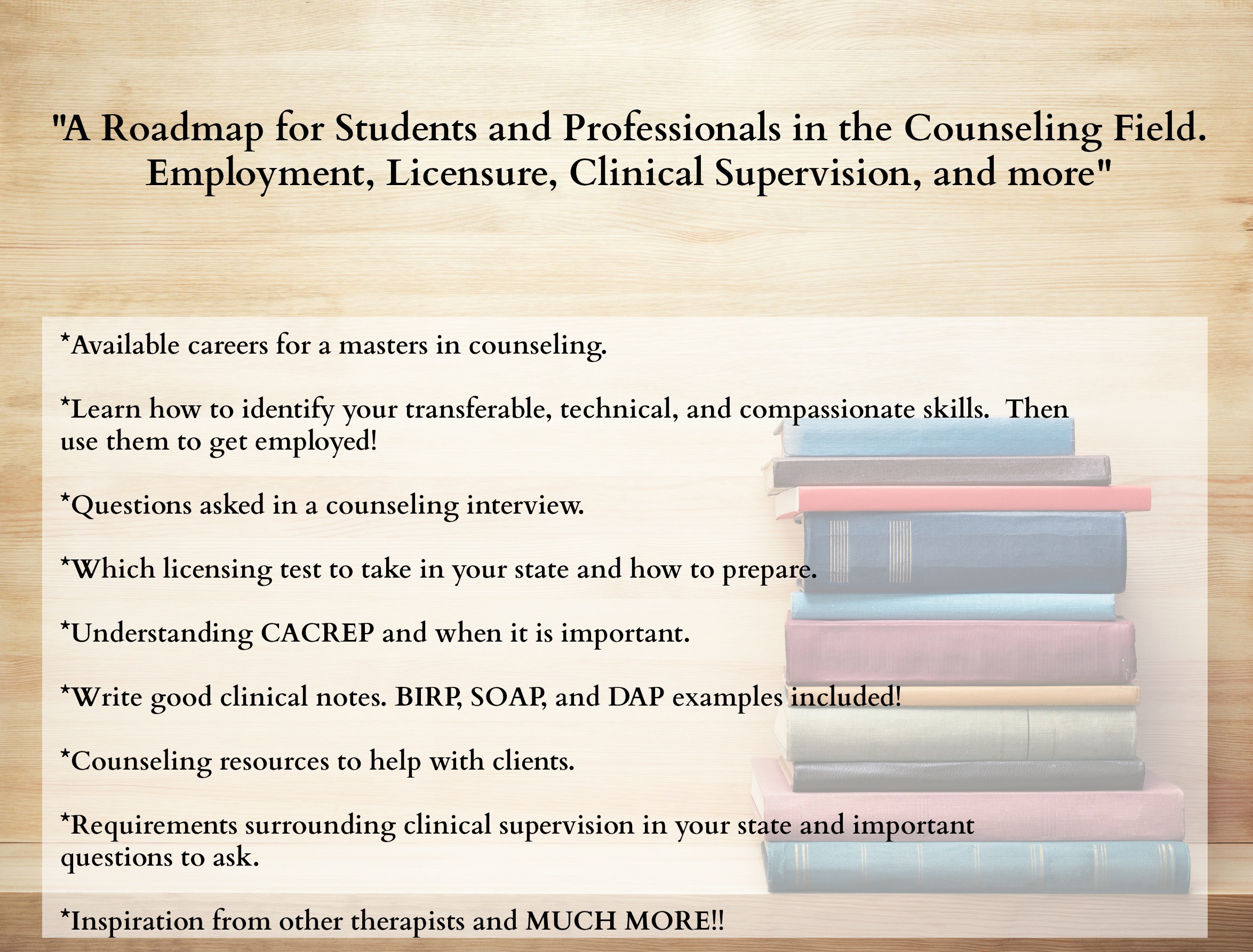 I have researched multiple state requirements, have years of working in a university with graduate counseling students, and have spent countless hours helping students and professionals through these very subjects. Now, that information has been put into an 80+ page compact book for you!